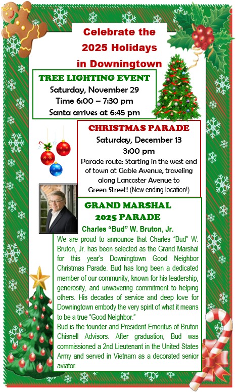 Dianne Plaugher (DGNC Chp.) at 484-678-6835 dtownchristmas@aol.com